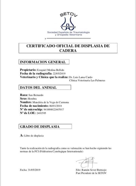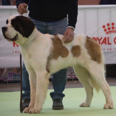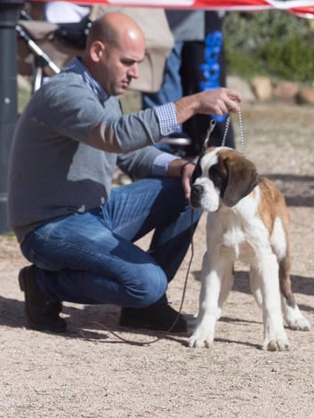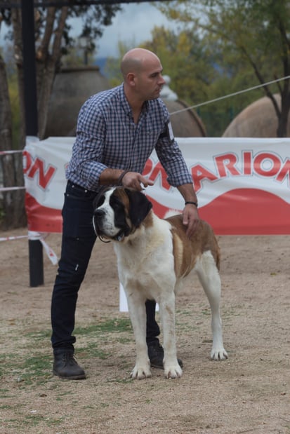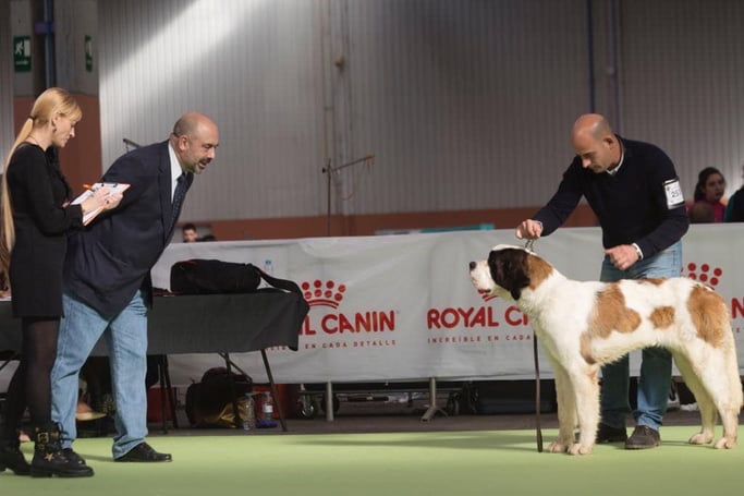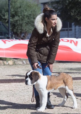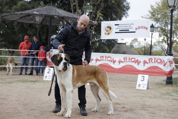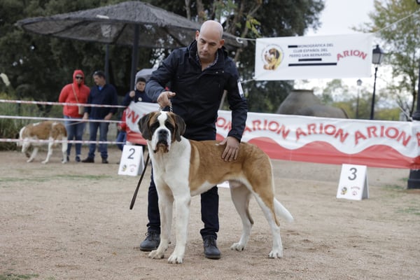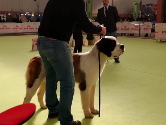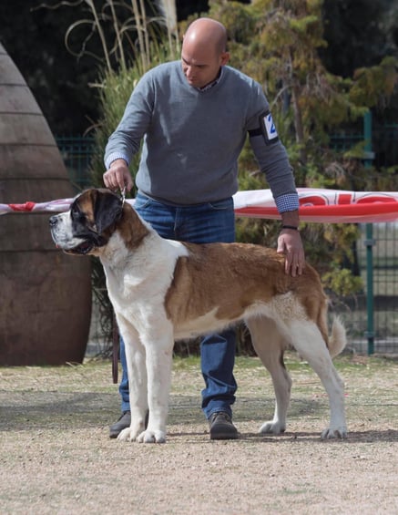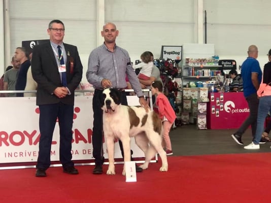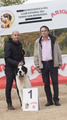 Olivia De la Vega de Carmona a sus 4 meses de edad consigue Muy prometedor 1 en clase muy cachorros y mejor cabeza absoluta de la Exposición. Todo ello en la Monográfica B del Club Español del perro San Bernardo con el juez especialista D. Christian Tessier. Bravo por Olivia