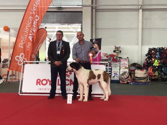 Manchita De la Vega de Carmona alias Mariki comienza a sus 18 meses de edad el campeonato de Portugal con buen pie, en Exposición internacional de Lisboa (Punto Obligatorio) obtiene Excelente 1 CAC-CACIB.